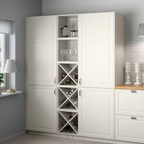 ボトルを見やすく、取り出しやすく収納できるオープンキッチンキャビネット