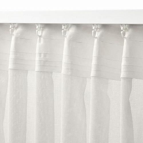 ホワイトのANGSFRYLE エングスフリレ レースカーテンは、光を通し、外の景色も見えます。 ゆったりとした幅300cm。幅の広い窓や、もっとプリーツを出したいときに最適です