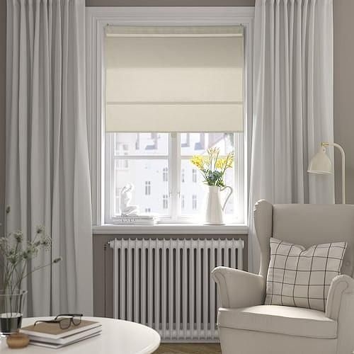布地が日差しを和らげ、あたたかみのある雰囲気をつくります。 取り外して洗えます。キッチンやバスルームなどのあらゆる部屋に最適。 上げ下げはマグネット式です