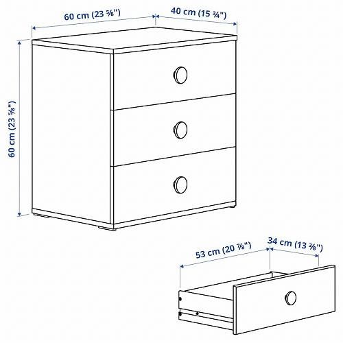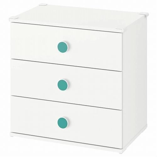 ちょうどよい高さで、広々とした引き出し3個におもちゃやセーターを収納できます。