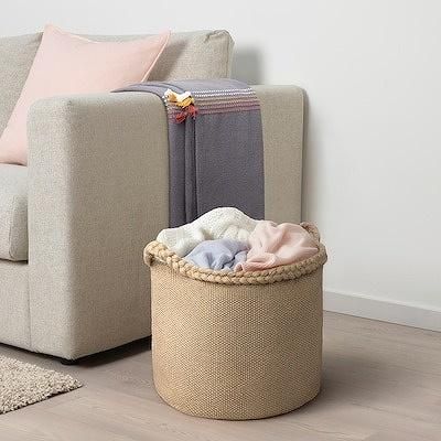手編みの縁が付いたシンプルなジュート製バスケットで、室内に自然の要素を取り入れましょう。
