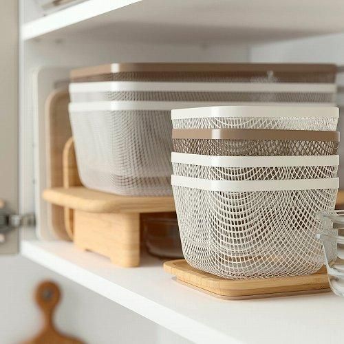 常温で風通しのよい場所に保存するとおいしさや鮮度が長持ちする食材はたくさんあります。 IKEA 365+ 食品保存バスケット ふた付きは、スタイリッシュかつ実用的。メッシュ構造のため、中に入っているものをつねに把握できます
