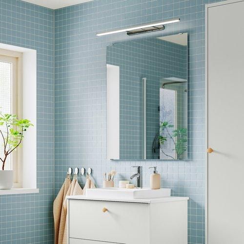 ミニマリストデザインのスリムなLED照明。ランプヘッドの角度を調節して、まぶしさのない明るい光の下でメイクやひげそりができます。 ミラーキャビネットの上や、バスルームミラーの上の壁に設置するのに最適です