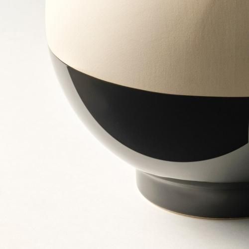 上部はマットベージュの粘土、下部はグロスブラック仕上げの大胆かつモダンなデザイン。どの部屋に置いても目を引く個性的な花瓶です