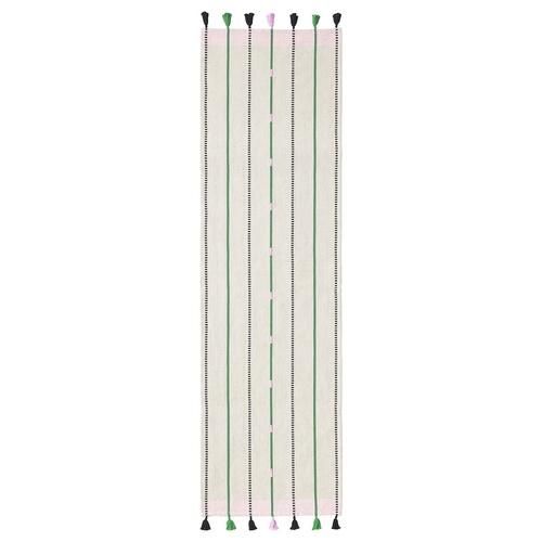 柔らかな綿のおしゃれなテーブルランナー。ストライプに手刺繍でピンクの小さなアクセントを入れています。テーブルの上はもちろん、ベッドや、玄関のチェストの上にもぴったりです