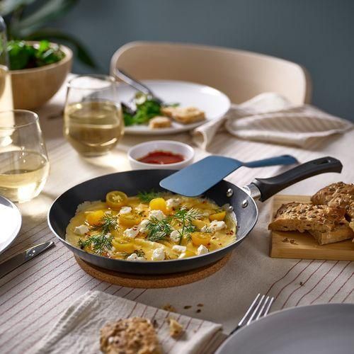 特にIHコンロのブースター機能を使用する際は、空のフライパンを急激に加熱しないでください。変形の原因となり、コーティングのこびり付き防止効果が損なわれるおそれがあります