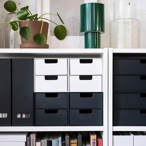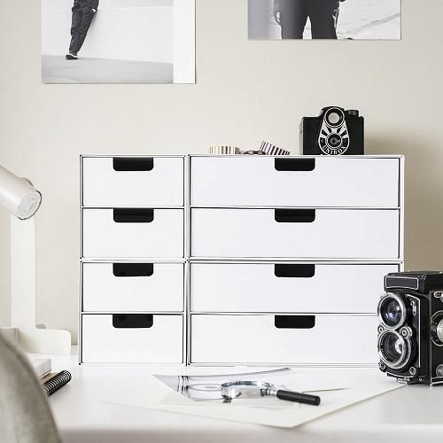 行方不明になりがちな小物の収納にぴったりのミニチェスト。 すっきりかたづく便利なチェストは、BILLY ビリー 本棚やデスクに置いて使えます。 FJADERHARV フィェデルハルヴ シリーズのほかのアイテムとコーディネートできます