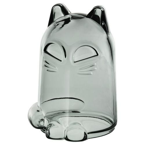 このネコをテーブルの上に置きましょう! ダークグレーのガラス製デコレーションは、目、耳、しっぽ、前足が付いたネコのような形。 そのまま飾っても、光る小さなライトチェーンをお腹に入れてもステキです