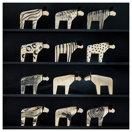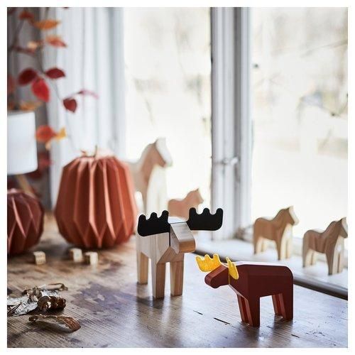 1個だけでもかわいいですが、オレンジステインを塗ったパイン無垢材製の体にイエローの角が付いた、小さいヘラジカと並べて飾るのもおすすめです