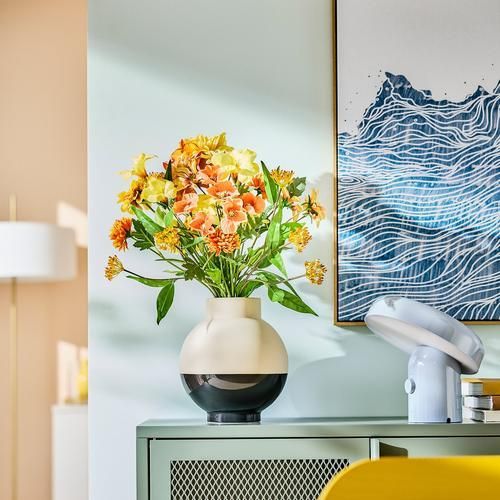 毎日の暮らしに彩りと植物を! 素材のプラスチックには、リサイクルプラスチックが50%以上含まれています。造花のブーケは家の中で毎日咲き続け、ホリデーディナーから月曜の朝食まで、あらゆる食卓を彩ります
