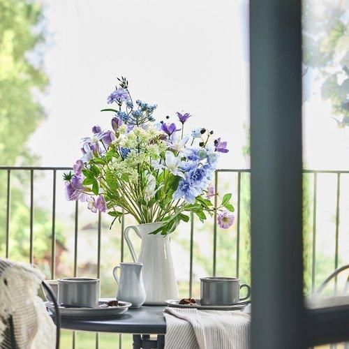 毎日の暮らしに彩りと植物を! 素材のプラスチックには、リサイクルプラスチックが50%以上含まれています。造花のブーケは家の中で毎日咲き続け、ホリデーディナーから月曜の朝食まで、あらゆる食卓を彩ります