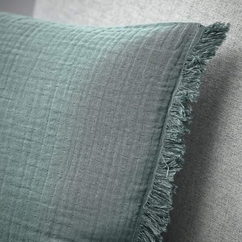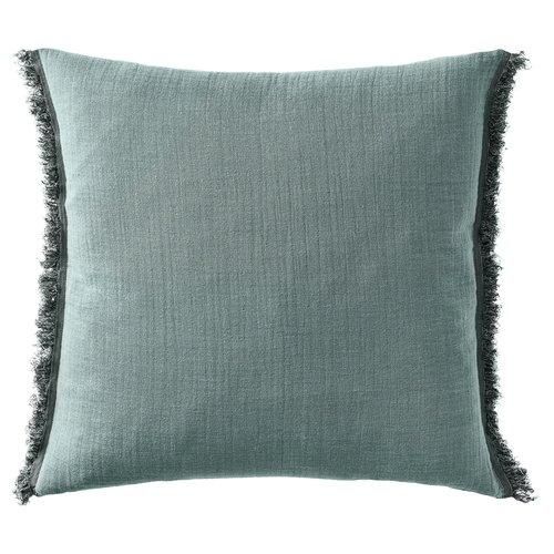 リラックスした雰囲気をつくりたいときは、ソファやベッドの上にVALLKRASSING ヴァルクラッスィング クッションカバーやひざ掛けをプラスしましょう。 とても柔らかなコットンモスリンがつくり出すシワのある風合いが、切りっぱなしのフリンジとよく調和しています