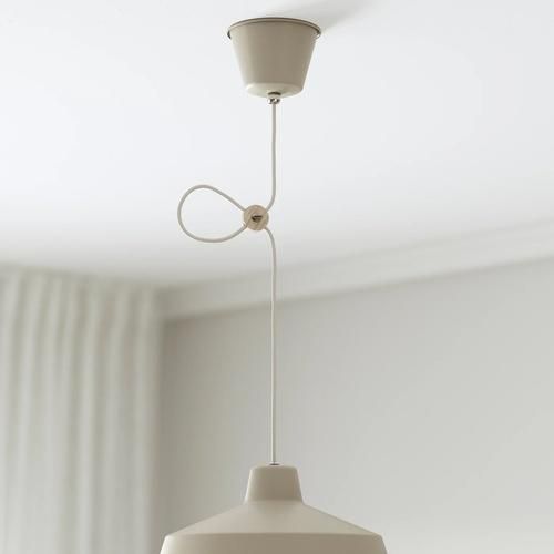 昔の靴屋のランプをインスピレーションにした、とてもノスタルジックなデザイン。 金属製のシェードとアッシュ無垢材製のコードアジャスターが付いたペンダントランプは、ダイニングテーブルの上にちょうどいい高さでつり下げるのも簡単です