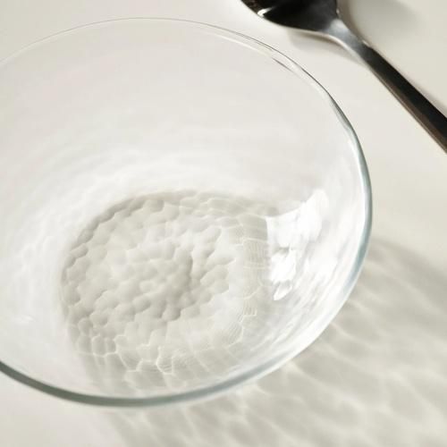 槌目(つちめ)模様のガラスは砂浜の波紋を思わせ、光が差し込むと美しい影の模様をつくり出します。 さらにボウルの柔らかな温かみのあるフォルムが加わり、食卓にちょっとした特別な雰囲気をプラスします!