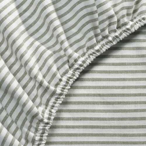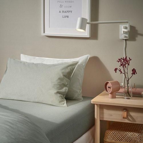 IKEA イケア ボックスシーツ ホワイト グリーン/ストライプ ダブル 140x200 cm m70615769 SOLFIBBLAソルフィブラ