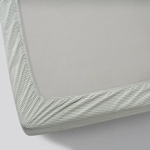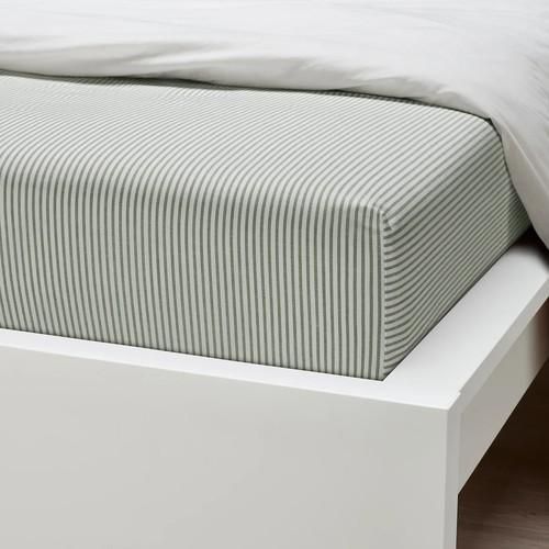 IKEA イケア ボックスシーツ ホワイト グリーン/ストライプ クイーン 160x200 cm m70615774 SOLFIBBLAソルフィブラ