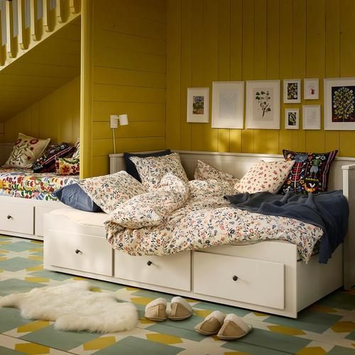 BRUDKRUSBAR ブルードクルスベール 掛け布団カバーセットは、GOTS認証のオーガニックコットン100%。通気性と吸湿性に優れた、心地よい肌ざわりの天然素材です。 白地に描かれた、カーブする茎に咲き乱れる野花の模様が特徴です