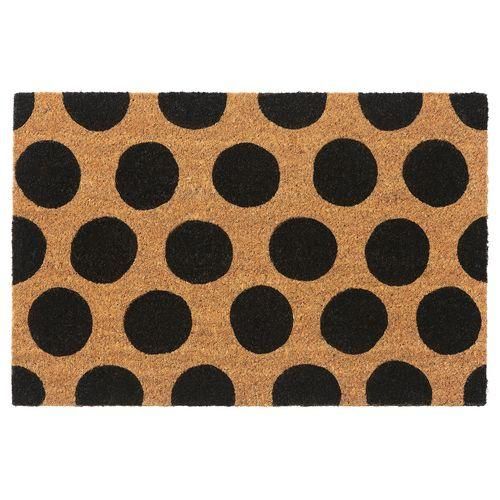 ブラックの水玉模様をあしらった耐久性に優れたドアマットが、モダンな玄関を演出します。 2枚並べて敷けば、たくさんの靴にも対応できます