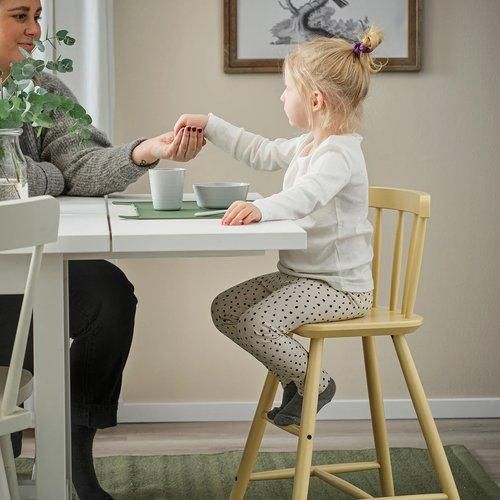 ハイチェアでは小さすぎるけれど、大人用のチェアはまだ早い? そんなときにおすすめなのが子ども用チェア。ダイニングテーブルにぴったりの高さで、足置きバー付き。ディナーや工作が快適に楽しめます