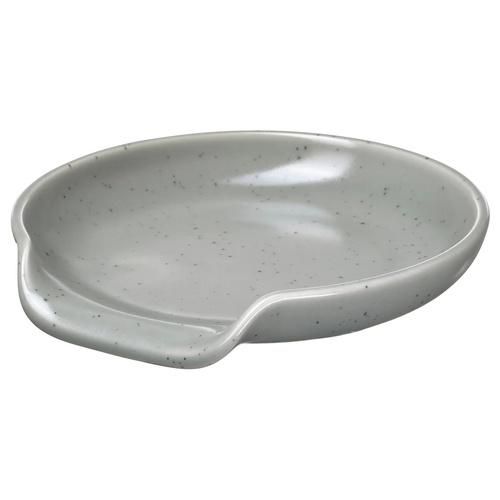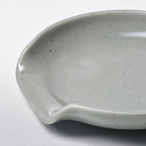 このおたま置きは、装飾的な水玉模様のせっ器製です