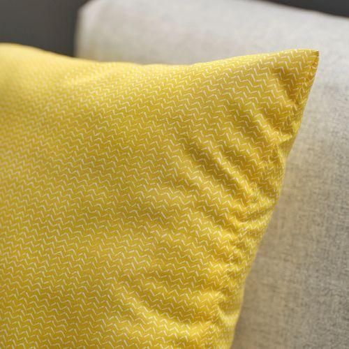 繊細な模様と美しい光沢が魅力のイエローのPROFETBLOMMA プロフェットブロマ クッションカバーは、ソファにスタイルと心地よさをプラスします。 GURLI グルリ クッションカバーやHOLMVI ホルンヴィ ブランケットとコーディネートできます。 リサイクルポリエステル100%です