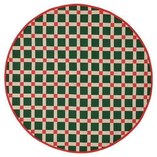 Evelina Kroonがデザインしたクリスマスツリー用マット。床を傷から守りつつ、ステキなデコレーションにもなります。 Evelinaがデザインを手がけたVINTERFINT ヴィンテルフィント コレクションのチェック模様のアイテムと、コーディネートが楽しめます