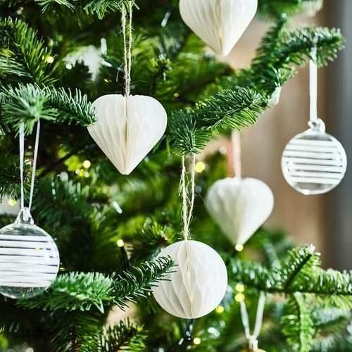 ホワイトクリスマスを夢見る人におすすめ。 それぞれ形が異なる6つの軽量のペーパーデコレーションは、クリスマスにぴったりな雰囲気を一瞬でつくり出します。 プレゼントやドアノブに付けるにも、そしてもちろんツリーに掛けるにも最適です