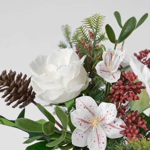 レッドとグリーンの素敵なフラワーアレンジメントで、クリスマスらしい心地よい雰囲気を家にプラスしましょう。 いつまでも新鮮なままの完ぺきなデコレーション。素材にリサイクルプラスチックが50%以上含まれています