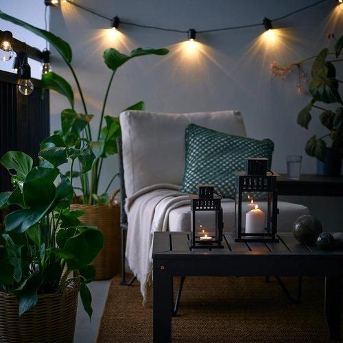 単独で使えるだけでなく、いくつか組み合わせる場合は同じ色やサイズでそろえることも、違う色やサイズで変化に富んだ印象をつくることもできます。 BORRBY ボッルビー ランタンはベーシックでトラディショナルな形。外が暗くなったとき、その光が屋外や室内に心地よい雰囲気を演出します