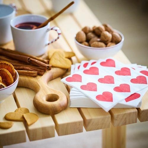 IKEA イケア 紙ナプキン ハート ホワイト/レッド 33x33 cm 30 ピース m60603795 VINTERFINT ヴィンテルフィント