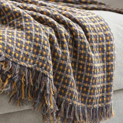 このイエローとグレーのドビー織りの繊細な質感のブランケットは、シンプルな手織りの雰囲気があり、伝統的な魅力が楽しめます。 お好みでいくつかクッションを組み合わせれば、ソファに完ぺきな心地よさを演出できます