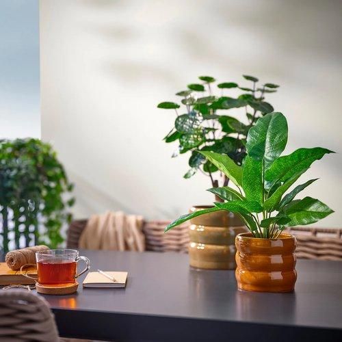 遊び心のあるフォルム、独特の色合いの違いが楽しめる釉薬(ゆうやく)が、家と植物に活気をプラスします。 単独でもステキですが、ほかの色や形の鉢カバーと組み合わせれば個性を演出できます