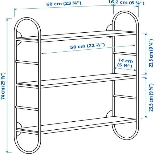 3枚の棚板は、あらかじめ設定された固定位置にのみ設置できます