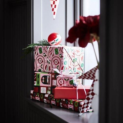IKEA イケア ギフト包装紙 柄ミックス レッド/ピンク 3x0.7m 3枚セット m70602979 VINTERFINT ヴィンテルフィント