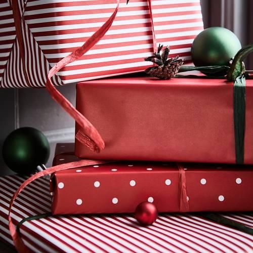 IKEA イケア ギフト包装紙 柄ミックス レッド/ホワイト 3x0.7m 3枚セット m30602976 VINTERFINT ヴィンテルフィント