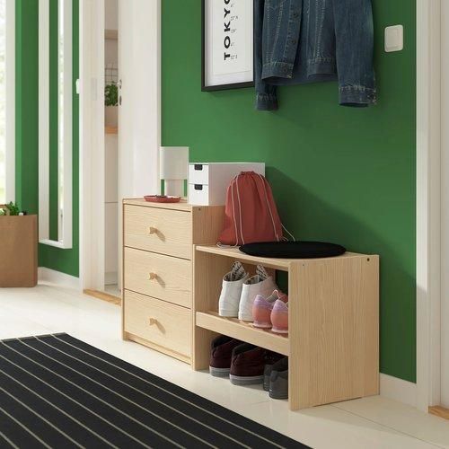 RAGGBERG ラッグベリ ベンチ 靴収納付きの高さは、一般的なキッチンチェアと同じなので、快適に腰かけて靴を履いたり、ダイニングテーブル用の予備の座席にしたりできます