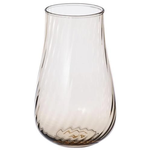 渦巻き模様が、美しい動きと光の反射を生み出します。多くの人に楽しんでもらえるエレガントな花瓶です。 しずく形のデザインと、あたたかなライトブラウンの色合いが、洗練された印象を引き立てます