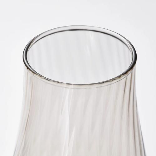 しずく形のデザイン、あたたかなライトブラウンの色彩、光を反射して動きを生む内側の渦巻きが、繊細かつ個性的な花瓶は、どこに置いても目を引きます
