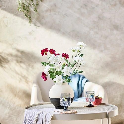 毎日の暮らしに彩りと植物を! 素材のプラスチックには、リサイクルプラスチックが50%以上含まれています。造花は家の中で毎日咲き続け、ホリデーディナーから月曜の朝食まで、あらゆる食卓を彩ります