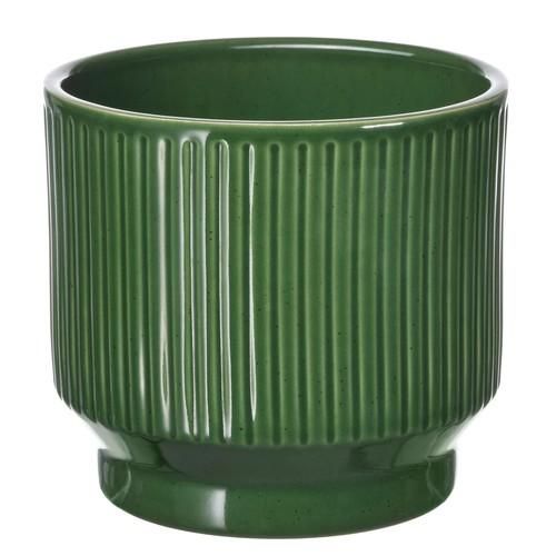 鉢カバーのかすかなストライプとクラシックなクリスマスカラーの美しい釉薬(ゆうやく)が、室内にぬくもりのある心地いい雰囲気を演出します。 季節の植物や人工観葉植物を組み合わせましょう