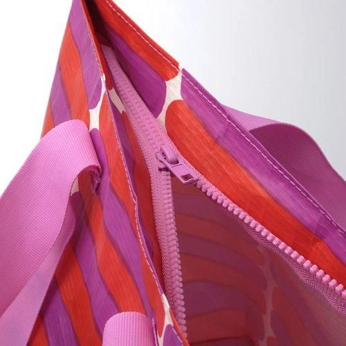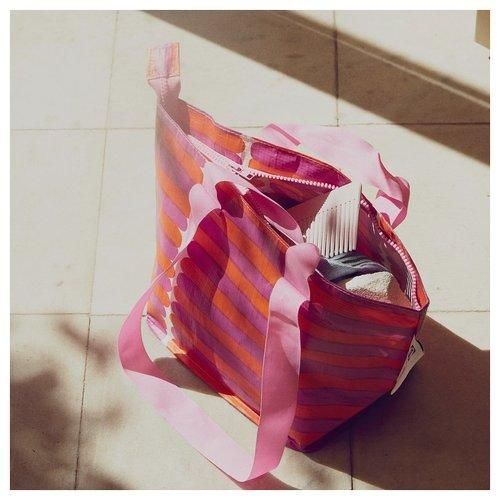 ストライプが好きな方に。 サウナやマッサージに行くときは、このファスナー付きのカラフルなエコバッグに化粧品をすっきり安全にしまいましょう